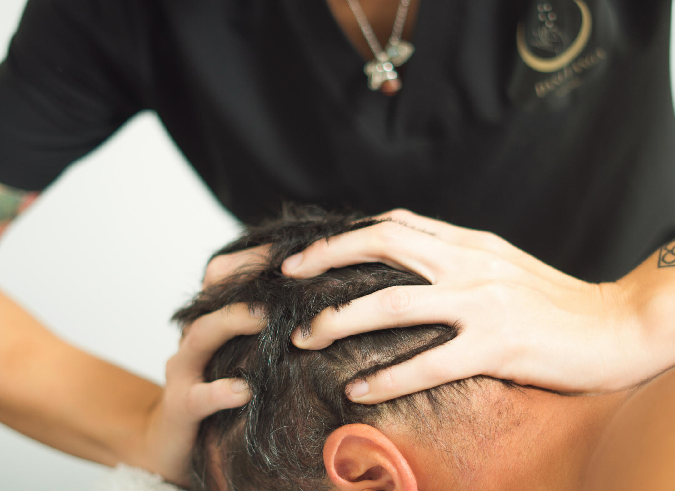 El masaje comienza con un trabajo más minucioso y profundo para aliviar tensiones de ambas zonas, seguido de un masaje suave del cuero cabelludo para estimular el sistema nervioso parasimpático y así lograr una relajación profunda. Recomendado para personas con estrés, ansiedad, migrañas, dolores tensionales, bruxismo, mareos y otras.